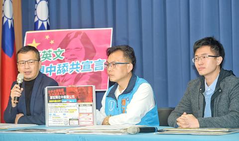 President Tsai Ing-wen (蔡英文) is “pro-China and sucking up to the Chinese Communist Party [CCP],” Chinese Nationalist Party (KMT) legislative candidate Cheng Cheng-chien (鄭正鈐), KMT Taipei City Councilor Lo Chih-chiang (羅智強) and New Party Taipei City Councilor Hou Han-ting (侯漢廷) said yesterday.