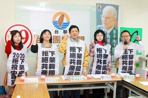 Taiwan Solidarity Union (TSU) officials and legislative candidates yesterday urged voters to cast their ballots for President Tsai Ing-wen (蔡英文) and reject Kaohsiung Mayor Han Kuo-yu (韓國瑜), the Chinese Nationalist Party’s (KMT) presidential candidate, as supporting Han is tantamount to supporting support China.