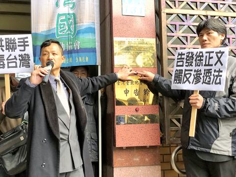 A member of a pro-Taiwan independence group yesterday filed a complaint with the Taipei District Prosecutors’ Office accusing Chinese Nationalist Party (KMT) central committee member Vincent Hsu (徐正文) of doctoring the passenger list of the first charter flight of Taiwanese evacuees from Wuhan on Monday.