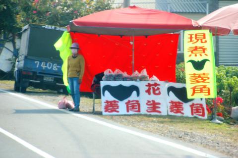 There are numerous sellers along 10km of Kanding Township’s (崁頂) Nanjhou Road, all of whom have signs featuring water caltrops, the vendor said.
