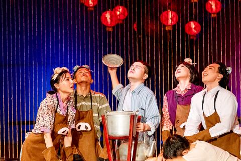 The outdoor launch party for this year’s TIFA was to be three free performances on Friday of Taiwanese playwright-director Fan Chung-chi’s (樊宗錡) Bando (十二碗菜歌), a musical incorporating traditional banquet catering, with snacks provided to audience members, in the main plaza between the National Theater and the Concert Hall.