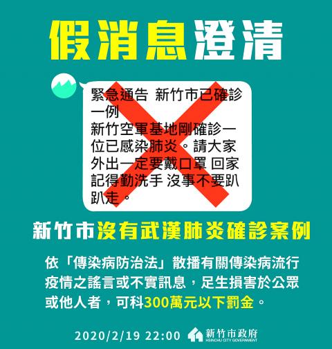 An investigation was initiated after verifying with health authorities and base officials that the messages are false, Hsinchu City Police Precinct Chief Teng Hsueh-hsin (鄧學鑫) said.