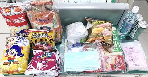 The Taoyuan City Government said that its kit includes small snacks, instant noodles, water bottles, cereal and medicinal herbs to help boost the body’s immune system.