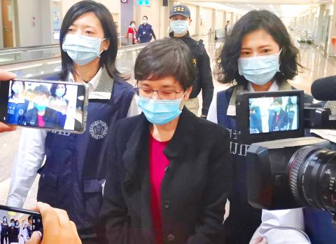 Wang Ying-chih (王音之), a former co-owner of Taipei-based New Site Industries Inc (NSI, 潤寅實業) and one of the chief suspects in the fraud case, arrived at Taiwan Taoyuan International Airport on a flight from Los Angeles, escorted by two US Immigration and Customs Enforcement agents, the bureau said.