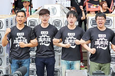 The groups yesterday met at the Kaohsiung City Government Fengshan Administration Center, and went to the election commission to deliver the signatures, Chen said.