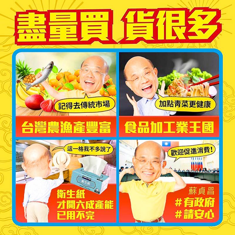 Su made the remarks at the Legislative Yuan in Taipei in response to media queries about his Facebook post on Thursday, which said that people can buy as much rice, fruit, seafood, processed food and tissue paper as they want, amid reports of panic buying at supermarkets.
