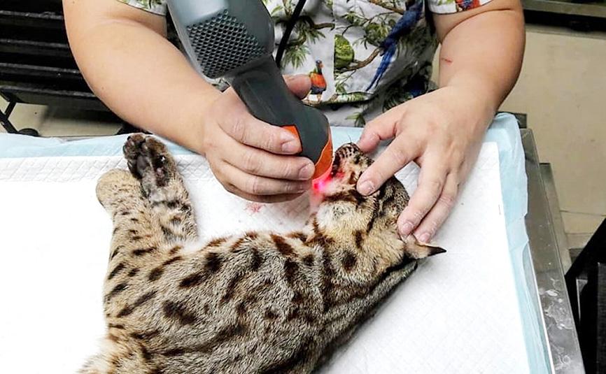The injured leopard cat was found on a cold and rainy night by a driver on a section of the highway near Miaoli City, the agency said, adding that other drivers also stopped their vehicles to help, covering the leopard cat with a towel, holding an umbrella over it and directing the traffic.