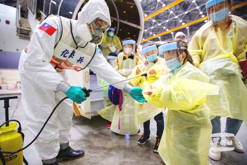The 153 evacuees arrived at Taiwan Taoyuan International Airport at 10:20pm on a government-