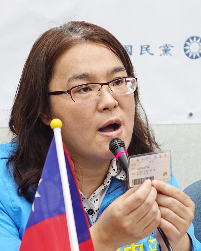 The national identification cards of Kinmen County residents show their place of birth as “Fujian Province,” said Chen Yu-jen, who represents the county, adding that Su continually talks about “Taiwan” as if Kinmen residents were orphans.