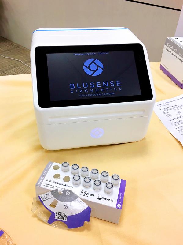 Taiwanese-Danish firm BluSense Diagnostics has developed a device to diagnose COVID-19 with 90 percent certainty within 12 minutes using one drop of blood, and the EU next month could license it for use and it could be available in Taiwan by June.