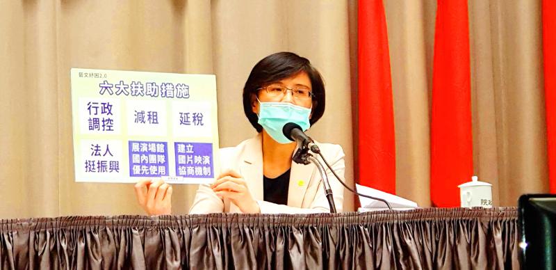 The application period for individuals, groups and businesses in art and cultural sector hurt by the COVID-19 pandemic opened on March 18 and ended on Friday last week, and 90 percent of the applications were submitted this month, Minister of Culture Cheng Li-chiun (鄭麗君) told an Executive Yuan news conference in Taipei, where she was joined by Minister Without Portfolio Kung Ming-hsin (龔明鑫).