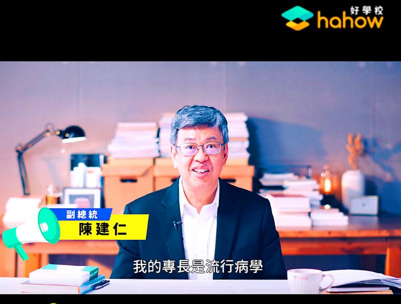 Vice President Chen Chien-jen (陳建仁) yesterday joined online educational platform Hahow with a video about disease prevention, in which he shares his views on Taiwan’s experience containing COVID-19, what to do in face of the pandemic and future developments of the disease.
