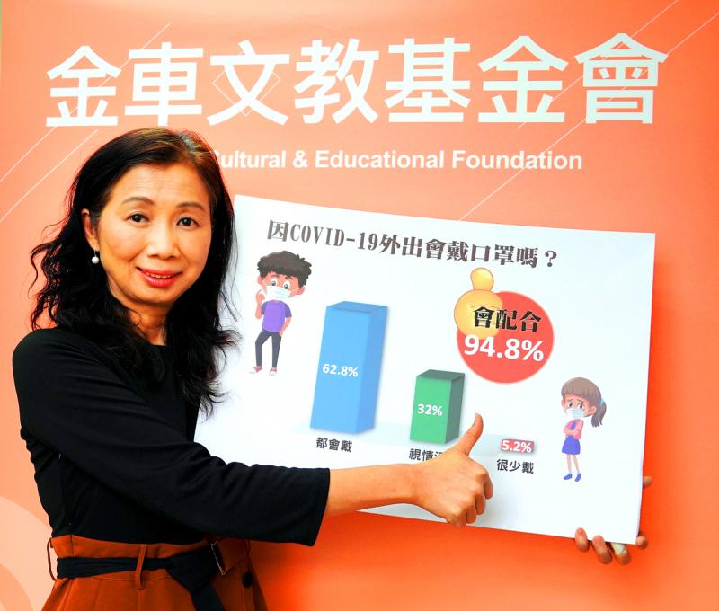 Nearly 95 percent of Taiwanese teenagers are willing to wear a mask in public places, a survey released by the King Car Cultural and Educational Foundation showed yesterday, as the government implements mandatory measures to fight the COVID-19 pandemic.