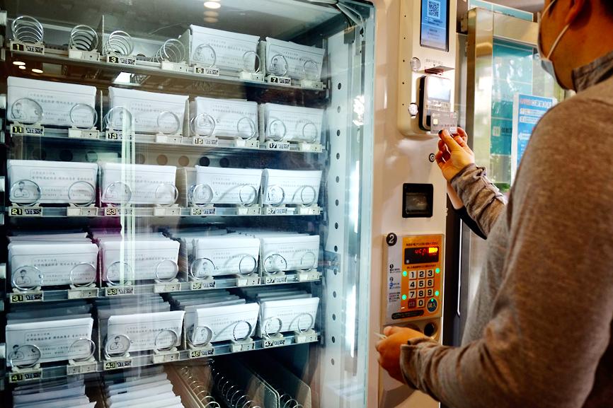 The vending machines are efficient and spare people from the long lines at pharmacies, Taipei Mayor Ko Wen-je (柯文哲) said, adding that machines should be installed at all 12 of the city’s district health centers within a week.