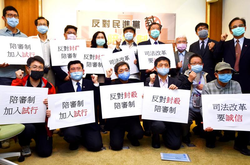 NPP caucus whip Chia Hsien-chih (邱顯智) said that the Judicial Yuan was widely criticized for ignoring the public opinion when it released its first draft of the act, as it would only apply to about 1,200 cases per year where defendants could face up to seven years in jail.