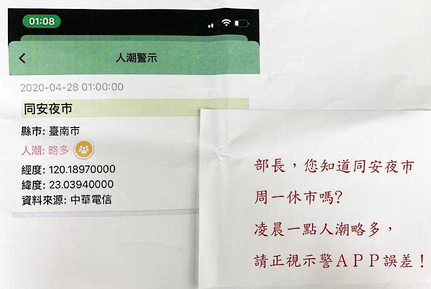 The app could show a yellow or red alert if there is a slight change in foot traffic, Lin said, adding that the ministry would regularly update the app’s functionality and make necessary changes.