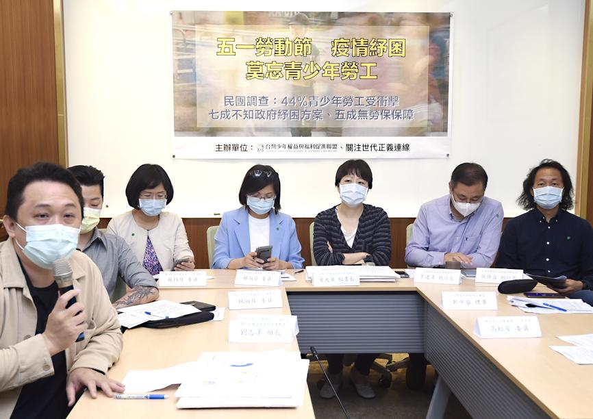 Democratic Progressive Party Legislator Su Chiao-hui (蘇巧慧), who attended the alliance’s news conference in Taipei, said that most young people work in the service sector, which has been the sector most affected by the pandemic.
