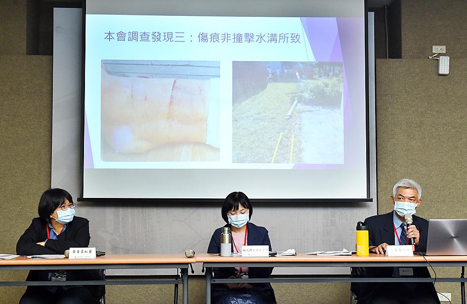 The commission had spoken with forensic examiner Lee Chun-yi (李俊億) — who worked on the case at the time — and confirmed that Chen had died before falling from the building, Yo said.