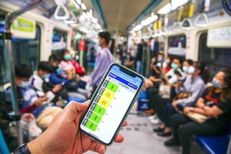 The Bannan Line has the highest ridership of the Taipei MRT’s routes, carrying about 520,000 people on Wednesday, Huang said, adding that the app would also add data for trains on the Wenhu Line (Brown Line), depending on the results of the trial on the Blue Line.