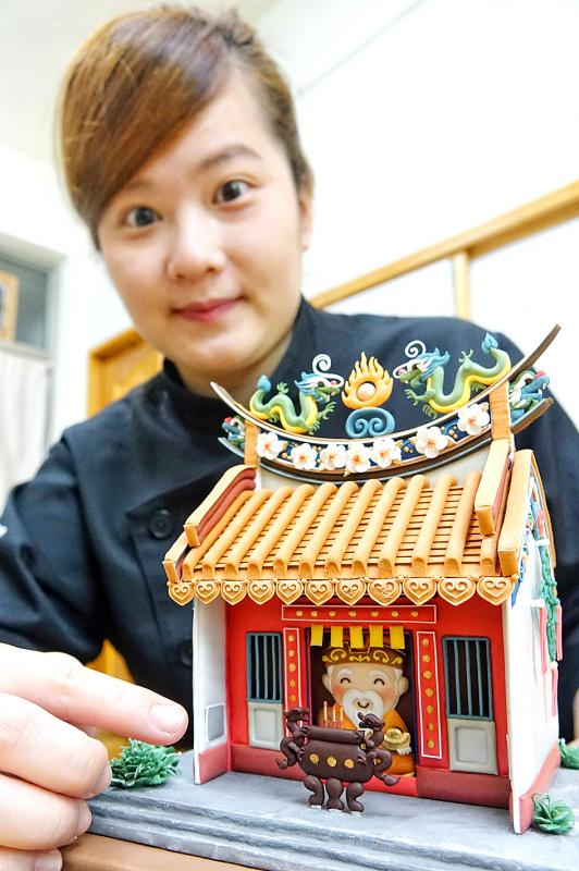 As she grew up in New Taipei City’s Sanchong District (三重), a region packed with temples, she incorporated Taiwan’s religious culture in her entry — a cake representing Tianhou Temple in Miaoli County’s Tongluo Township (銅鑼), which worships the sea goddess Matsu.