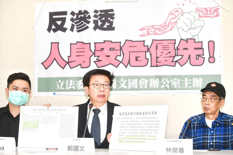 The Anti-infiltration Act (反滲透法) is not stringent enough to deter people from aiding foreign forces attempting to infiltrate Taiwan, Democratic Progressive Party Legislator Kuo Kuo-wen (郭國文) said yesterday as he proposed an amendment to better safeguard national security.