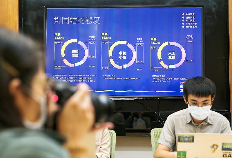 The Equal Love Taiwan survey was conducted by telephone from April 29 to May 2 and collected 1,086 valid responses from people aged 18 and older. It has a margin of error of 3 percentage points.