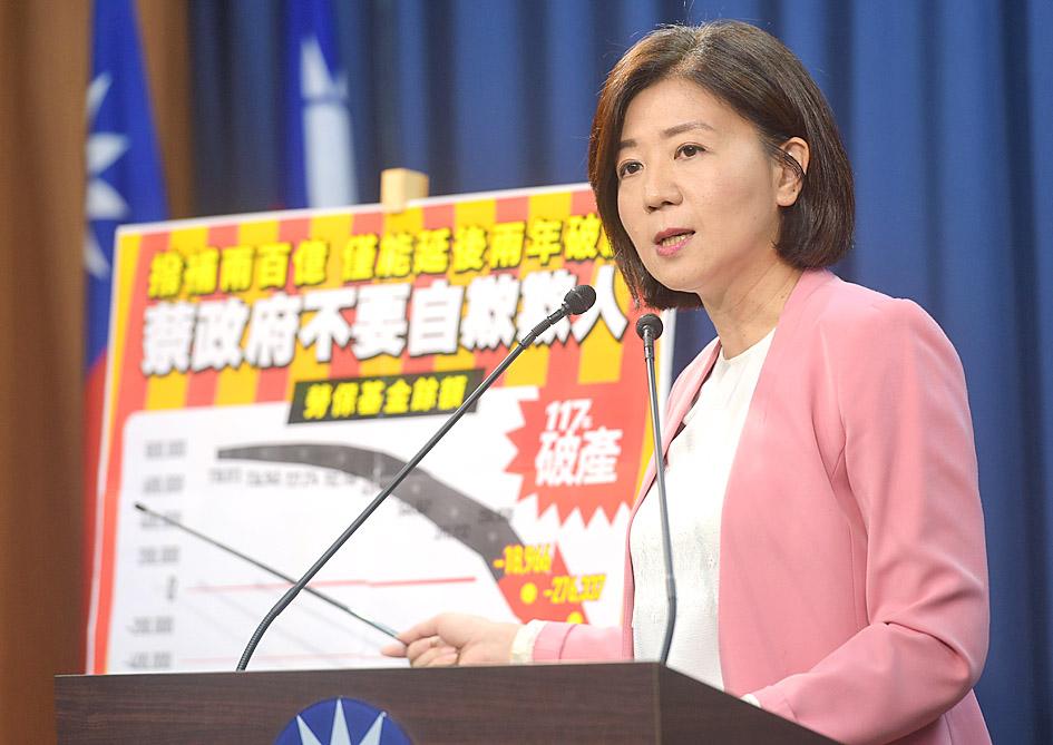 Also, the labor insurance fund is expected to go bankrupt in 2028, she said, urging the Tsai administration to take the issue seriously by proposing a feasible solution.