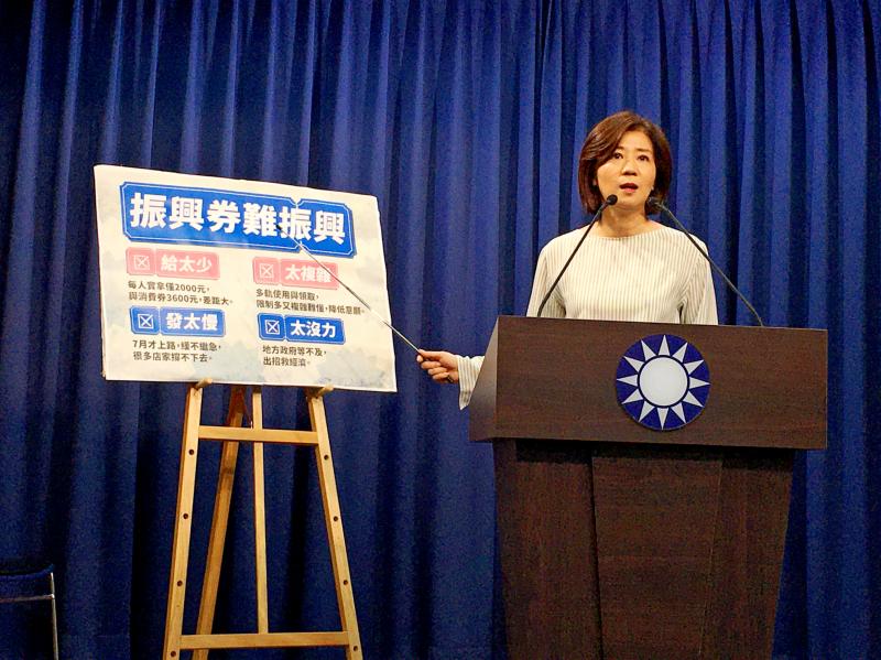 Instead, the KMT legislative caucus has proposed giving each person NT$6,000 in cash to stimulate the nation’s economy, she added.
