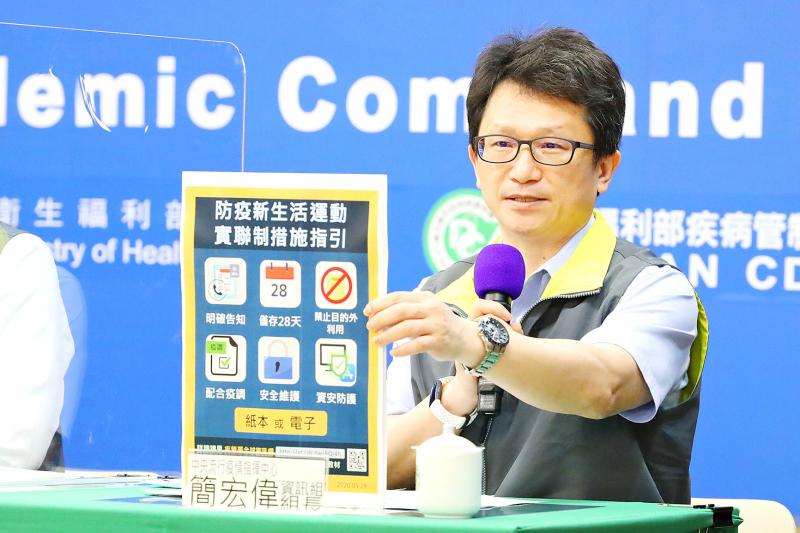 Collected information can only be used at the request of health authorities for COVID-19 investigations, said Chien Hung-wei (簡宏偉), who heads the center’s information team.