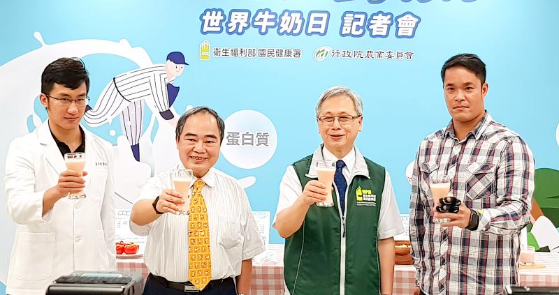 To mark World Milk Day yesterday, the HPA and the Council of Agriculture invited baseball star Lin Chih-sheng (林智勝) to promote the health benefits of milk and dairy products, and together they demonstrated how to make a nut and papaya milk smoothie.