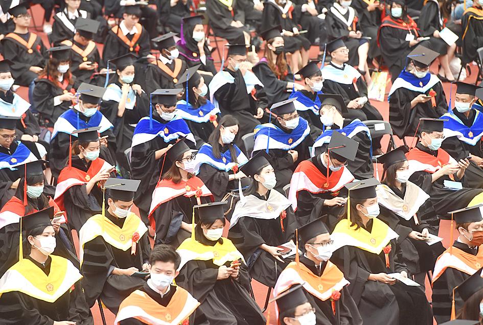 “We are apart in distance, put on masks and avoid contact with others. Such distancing can lead to alienation, as well as to more apprehension and misgivings, but we should reduce the psychological distance between people so that our society can maintain its intimate connections,” NTU president Kuan Chung-ming (管中閔) said in his address.