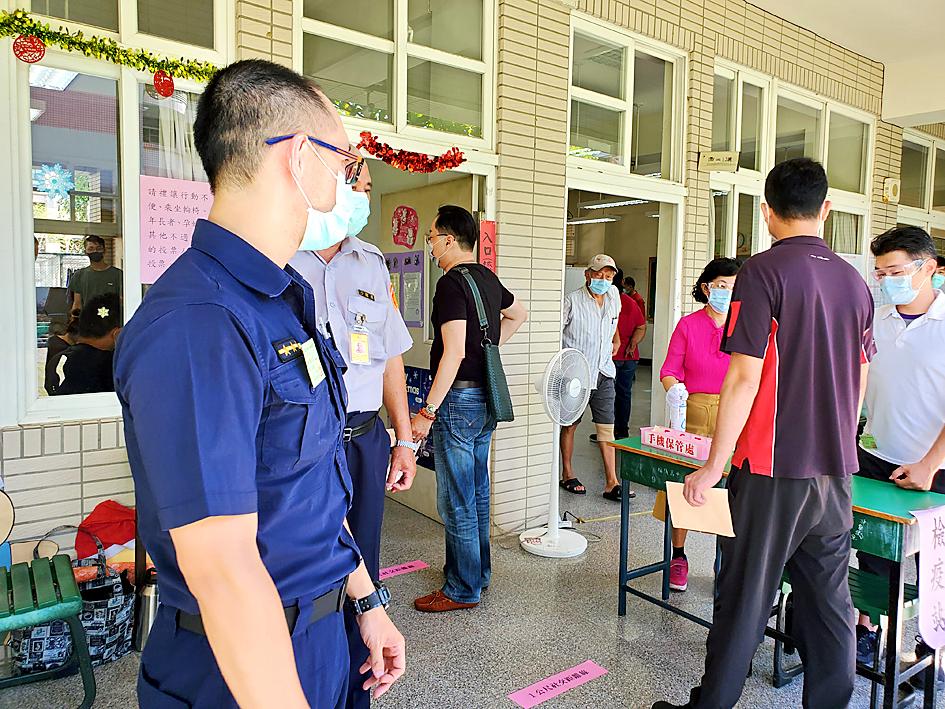 Police said that they checked on a man at the polling station at St. Paul’s High School in Kushan District (鼓山) after complaints that he had allegedly set up his smartphone outside to record who was entering to vote.