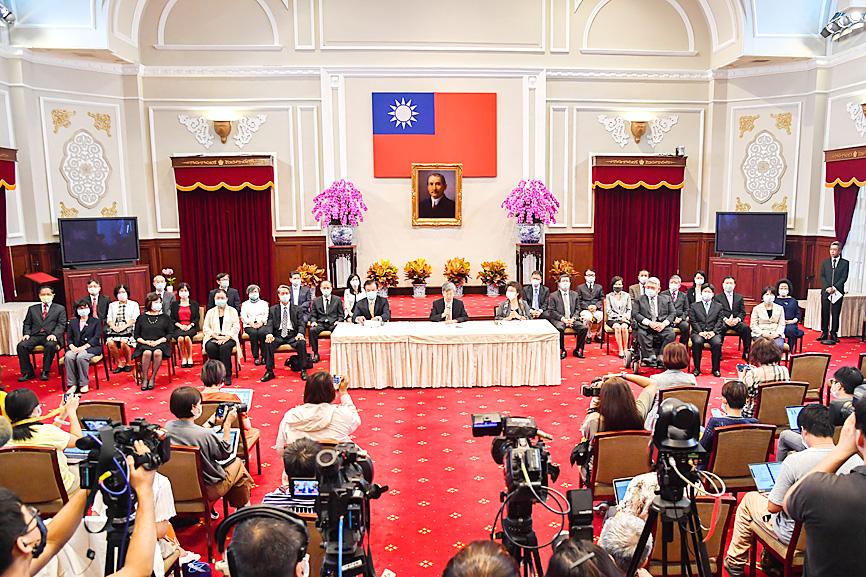 New nominees include Chi Hui-jung (紀惠容), a women’s rights advocate; former legislator Wang Jung-chang (王榮璋); Youth Rights and Welfare Secretary-General Yeh Ta-hua (葉大華); Antonio Hong (鴻義章), a member of the Presidential Office’s Indigenous Historical Justice and Transitional Justice Committee; Taipei Deputy Mayor Chen Chin-jun (陳景峻); Deputy Minister of Health and Welfare Su Li-chung (蘇麗瓊); former deputy minister of education Fan Sun-lu (范巽綠); former DPP legislator Yeh Yi-jin (葉宜津); Supreme Prosecutors’ Office prosecutor Kuo Wen-tung (郭文東); Deputy Auditor-General Wang Li-chen (王麗珍); Ill-gotten Party Assets Settlement Committee deputy-director Shih Chin-fang (施錦芳); National Sun Yat-sen University professor Lin Wen-cheng (林文程); Shih Hsin University professor Lai Ting-ming (賴鼎銘); National Taiwan University College of Medicine professor Hsiao Tsu-yu (蕭自佑); Lai Chen-chang (賴振昌), an accountant; Lin Yu-jung (林郁容), a doctor; National Dong Hwa University College of Indigenous Studies dean Pasuya Poitsonu; and lawyers Lin Kuo-ming (林國明) and Chang Chu-fang (張菊芳).