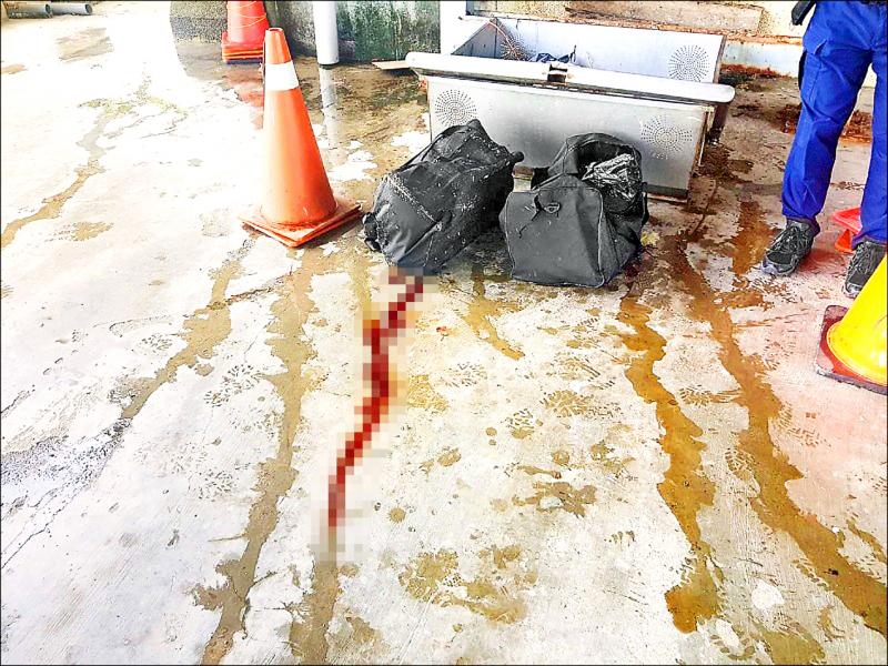 Two sanitation workers from the Kaohsiung Environmental Protection Bureau found one bag floating in the water while cleaning the river banks on Monday, police said.