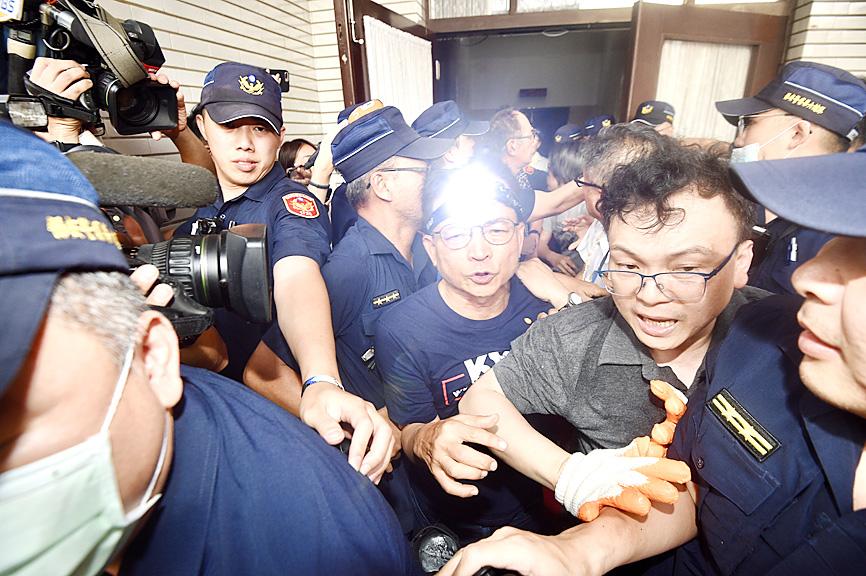 They were demanding that President Tsai Ing-wen (蔡英文) withdraw her nomination of former Presidential Office secretary-general Chen Chu (陳菊) as Control Yuan president.