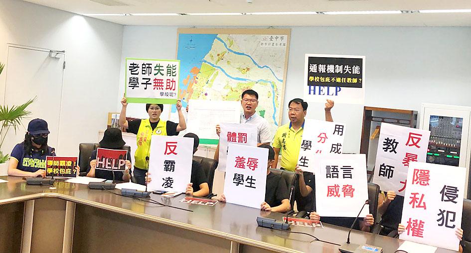 The teacher refused to use the names of several students, referring to them only by their student numbers, said Democratic Progressive Party (DPP) Taichung City Councilor Hsieh Chih-chung (謝志忠), who was at the news conference.