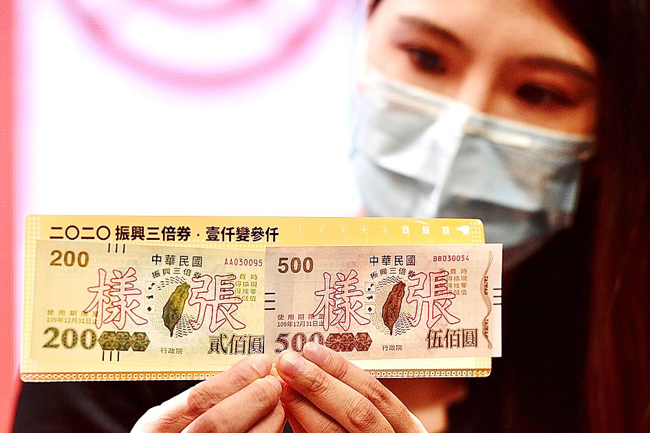 The NT$3,000 (US$101.26) vouchers per person, issued by the government to help boost the domestic economy amid the COVID-19 pandemic, can be ordered by paying NT$1,000 on the Web site or at major convenience stores throughout the nation, she said.