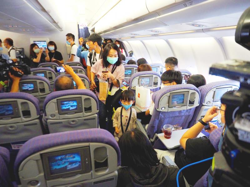 The passengers received boarding passes, and proceeded through security and immigration before boarding a China Airlines Airbus A330, where flight attendants chatted to them.