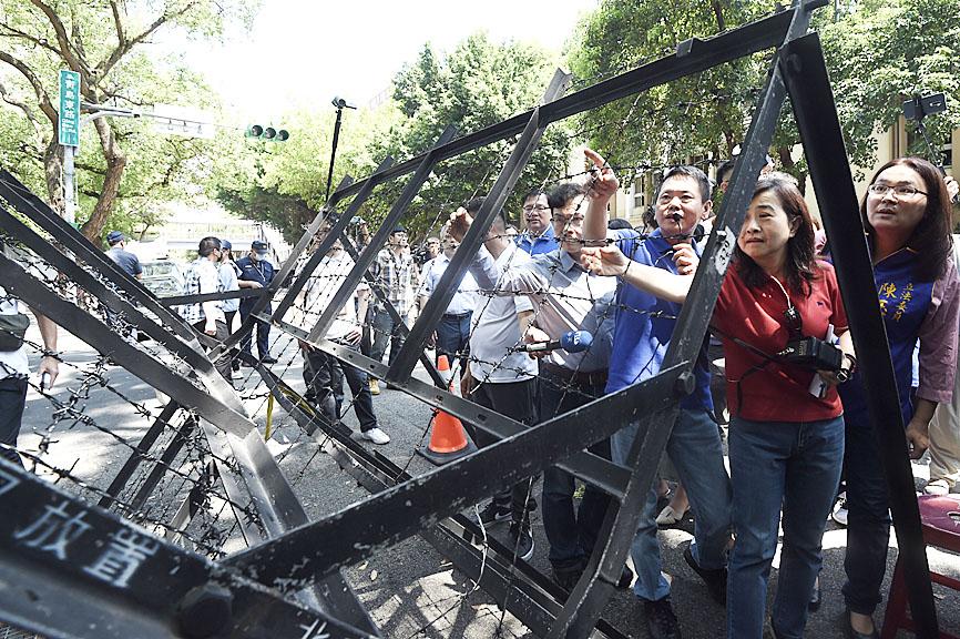 The KMT caucus yesterday criticized increased security measures, including barricades, outside the Legislative Yuan in Taipei ahead of Friday’s vote.