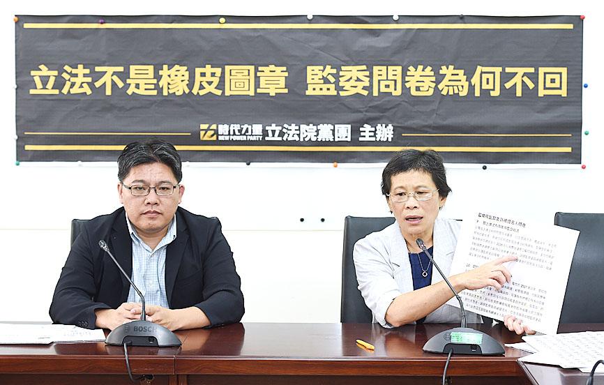 The New Power Party (NPP) yesterday expressed regret after questions it posed to President Tsai Ing-wen’s (蔡英文) nominees for the Control Yuan went unanswered.