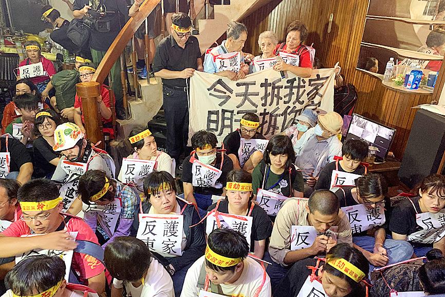 Despite arranging for police to be stationed at the site from 6am and moving machinery to Tainan’s East District (東區), the office said the protesters had still managed to enter the property and lock themselves inside.