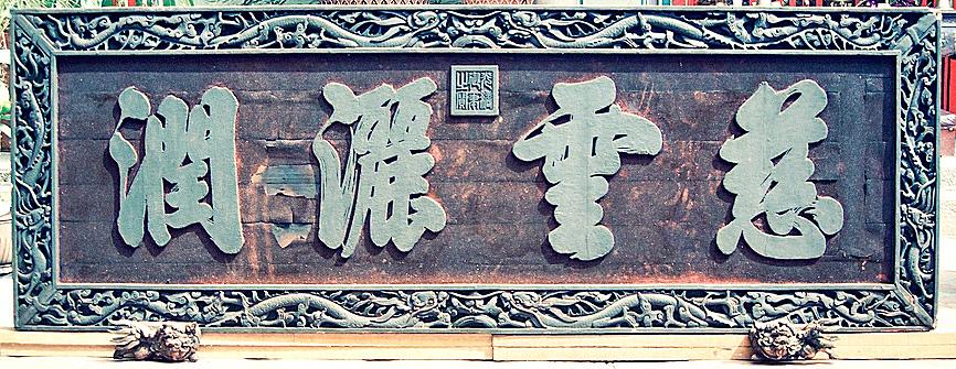 They were gifts from emperor Guangxu (光緒) in 1886 after the two temples collaborated to bring about rain and end a drought that year. Tai Yang Xian You refers to blessings for Taiwan and the ocean, while Ci Yun Sa Run reflects the goddess’ benevolence manifested in the form of clouds bringing rain.