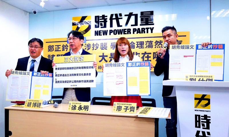 New Power Party (NPP) Chairman Hsu Yung-ming (徐永明) yesterday called for the recusal of Chinese Nationalist Party (KMT) Legislator Cheng Cheng-chien (鄭正鈐) from the Legislative Yuan’s Education and Culture Committee, saying that Cheng is facing allegations of plagiarism and could be the subject of a Ministry of Education investigation.
