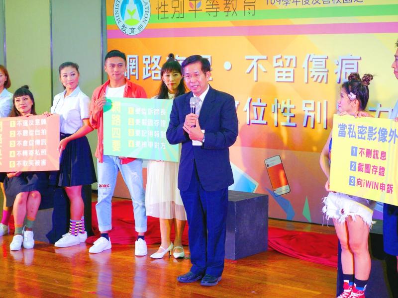 While gender violence exists in real life and online, it “spreads faster” online, said Theresa Yeh (葉德蘭), a member of the Gender Equality Education Committee and chair of the Taipei Women’s Rescue Foundation.