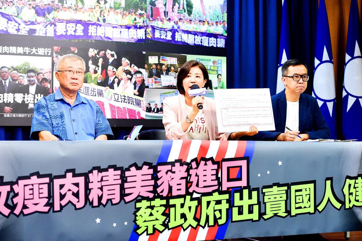 At a press conference at the KMT headquarters in Taipei, KMT Culture and Communications Committee chairwoman Alicia Wang (王育敏) said that the Tsai administration was “betraying” the public, and their health.