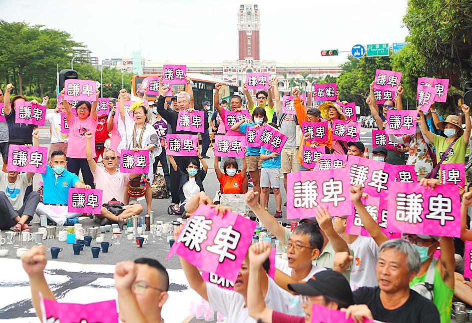 Alliance convener Pan Chong-cheng (潘忠政) said that Tsai should remember her own words, when in 2016 she asked her administration members to be “humble, humble and humble.”
