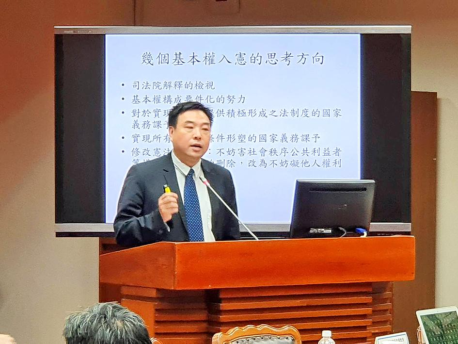 Chang Kun-sheng (張錕盛), a law professor and secretary-general of the Taiwan Administrative Law Association, said that it is time to draft a new constitution.
