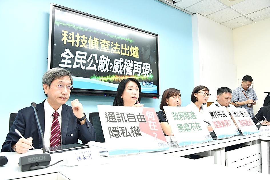 “We are worried about pervasive surveillance of interpersonal communications. People will live under constant surveillance by the government’s judicial agencies. We believe there is no need for this draft act,” KMT caucus secretary-general Lin Yi-hua (林奕華) said.