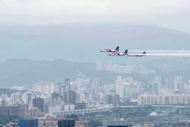 National Day Celebration Preparation Committee Secretary-General Chen Tsung-yen (陳宗彥), who is also deputy minister of the interior, said that yesterday’s rehearsals were conducted using only three out of the standard six aircraft, as would rehearsals on Sunday.