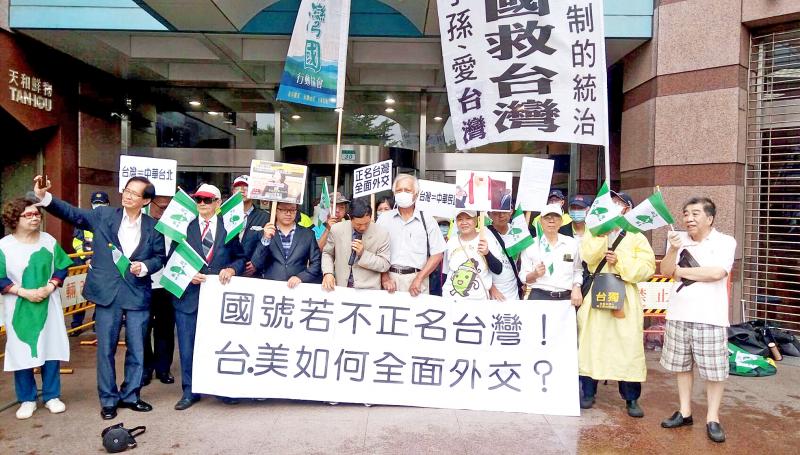 Independence advocates yesterday at a rally called on government leaders to “rectify” the nation’s official name as “Taiwan” as they denounced Minister of Foreign Affairs Joseph Wu’s (吳釗燮) remark of “not seeking formal ties with the US” during a media interview.